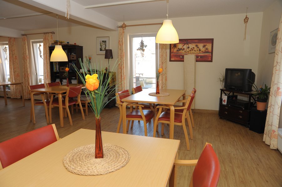 In dem Gebäude befindet sich ein Pflegebadbereich mit Wellness und Ruheräumlichkeiten sowie ein Wintergarten als Multifunktionsraum. Im Erdgeschoss haben die Bewohnerzimmer zum Teil Terrassen. Das Gebäude hat 3 größere Balkone mit Sitzmöglichkeiten. Die Bewohnerzimmer sind mit Anschlussmöglichkeiten für Telefon und Fernsehen ausgestattet. In jeder Wohngruppe befindet sich ein Münzfernsprecher. Zusätzlich zu den Gemeinschaftsräumlichkeiten stehen Sitzgruppen in den Flurbereichen zur Verfügung.