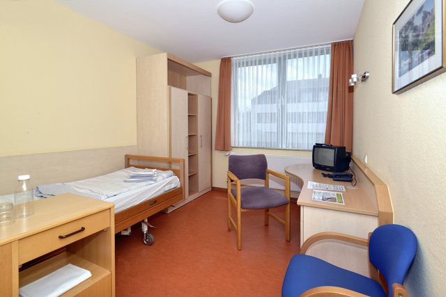 Unsere Patienten werden in Einzelzimmern untergebracht. Die Zimmer verfügen über Dusche/WC, Telefon, einen TV-Kabelanschluss und WLAN. Ihnen stehen zudem teileweise behindertengerechte Zimmer mit extra großem Sanitärbereich sowie mehrere Allergikerzimmer zur Verfügung.